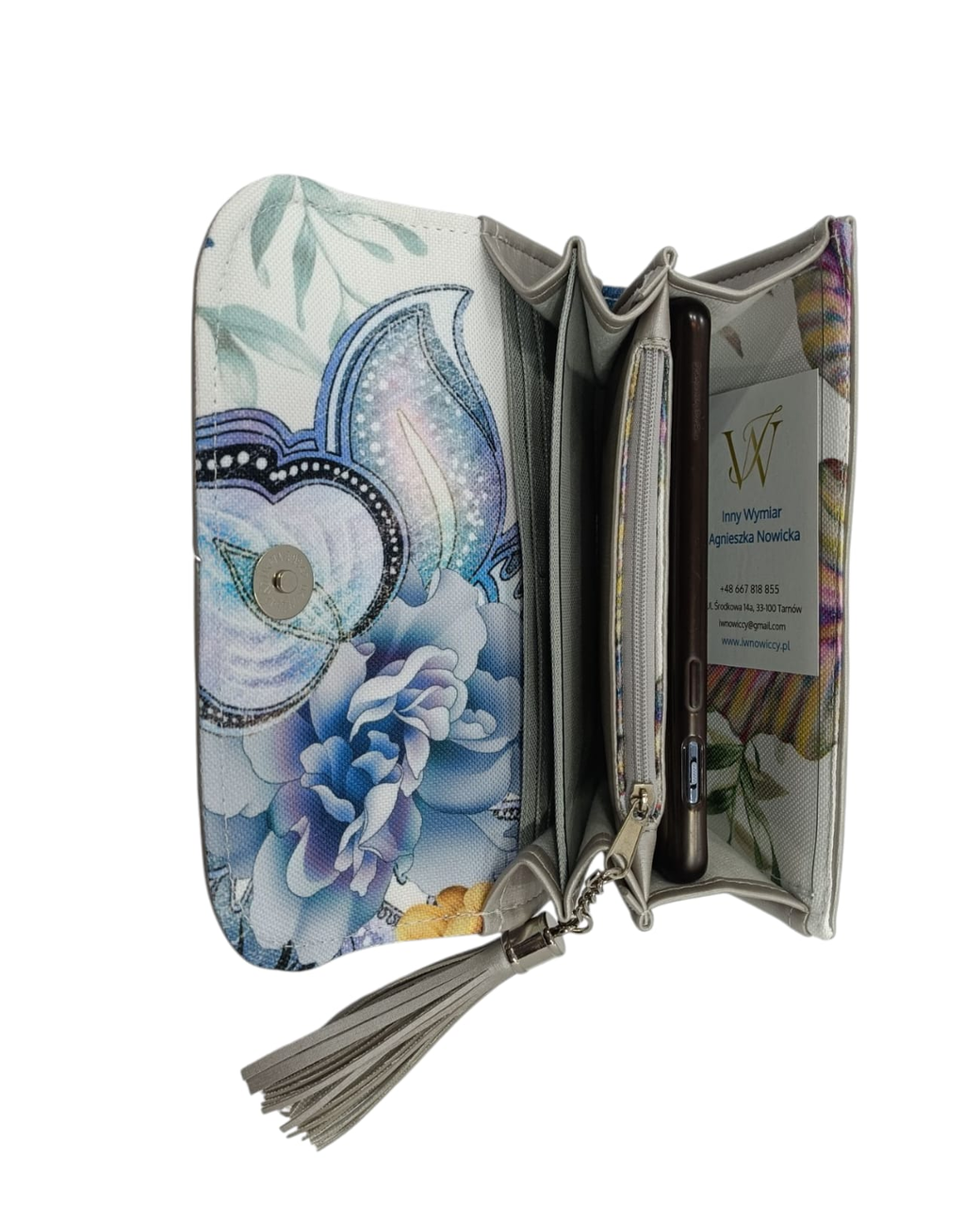Stwórz idealny komplet do swojej torebki. Wybierz rodzaj zapięcia, materiał i kolory. Wewnątrz przezroczysta kieszonka, w której będzie widoczne np. oświadczenie czy zdjęcie.