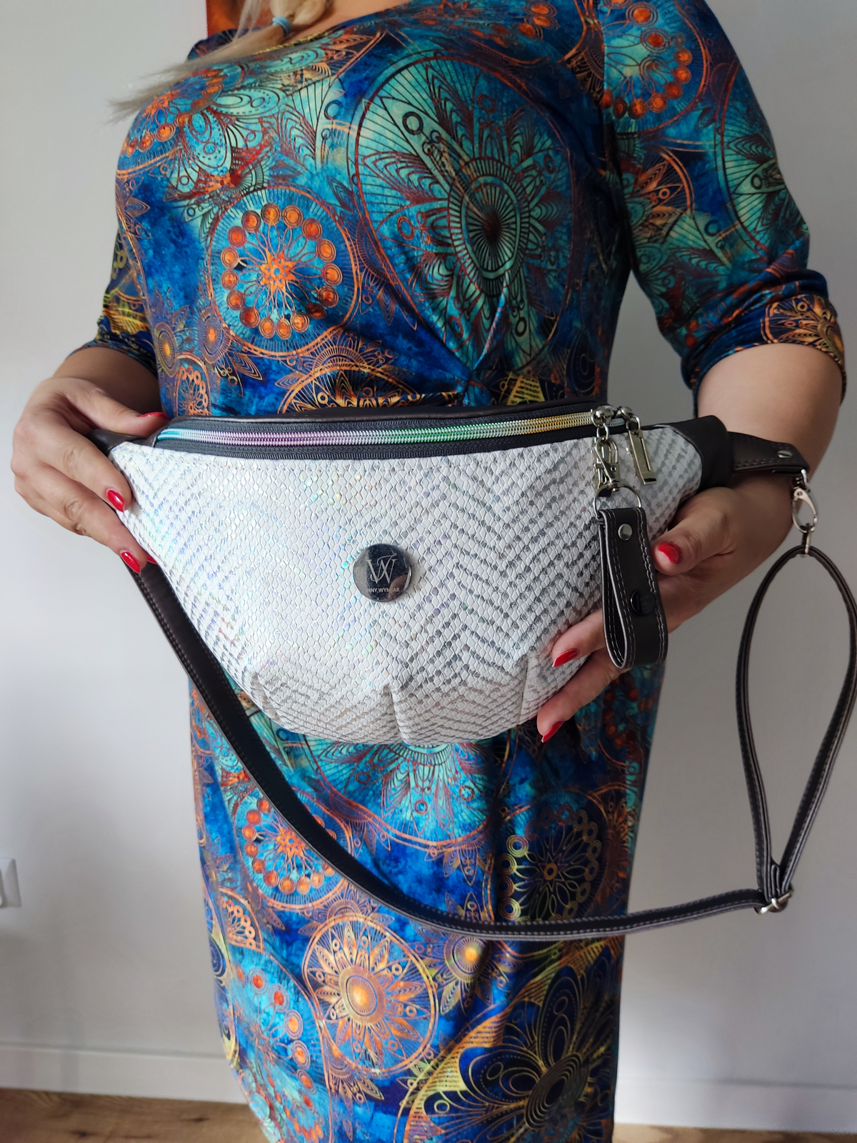 - Wszechstronność noszenia: noś ją na pasie, na ukos z przodu lub jak mały plecak na plecach. Wybierz sposób, który najlepiej odpowiada Twoim potrzebom i stylizacji.